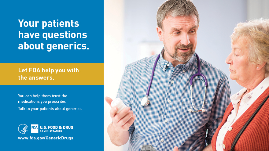 The following information is provided to help you promote FDA as a resource for information on generic medications and encourage prescribers and patients to talk to each other about generic medications.