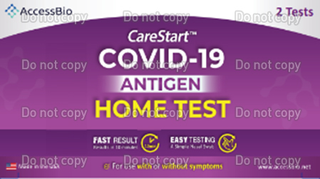 Access Bio, Inc.: CareStart COVID-19 Antigen Home Test Nombre comercial alternativo: | Fecha de vencimiento: Consulte la etiqueta de la caja | - Personas con síntomas que comenzaron en los últimos 7 días.