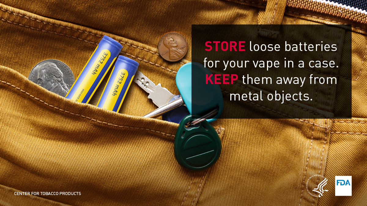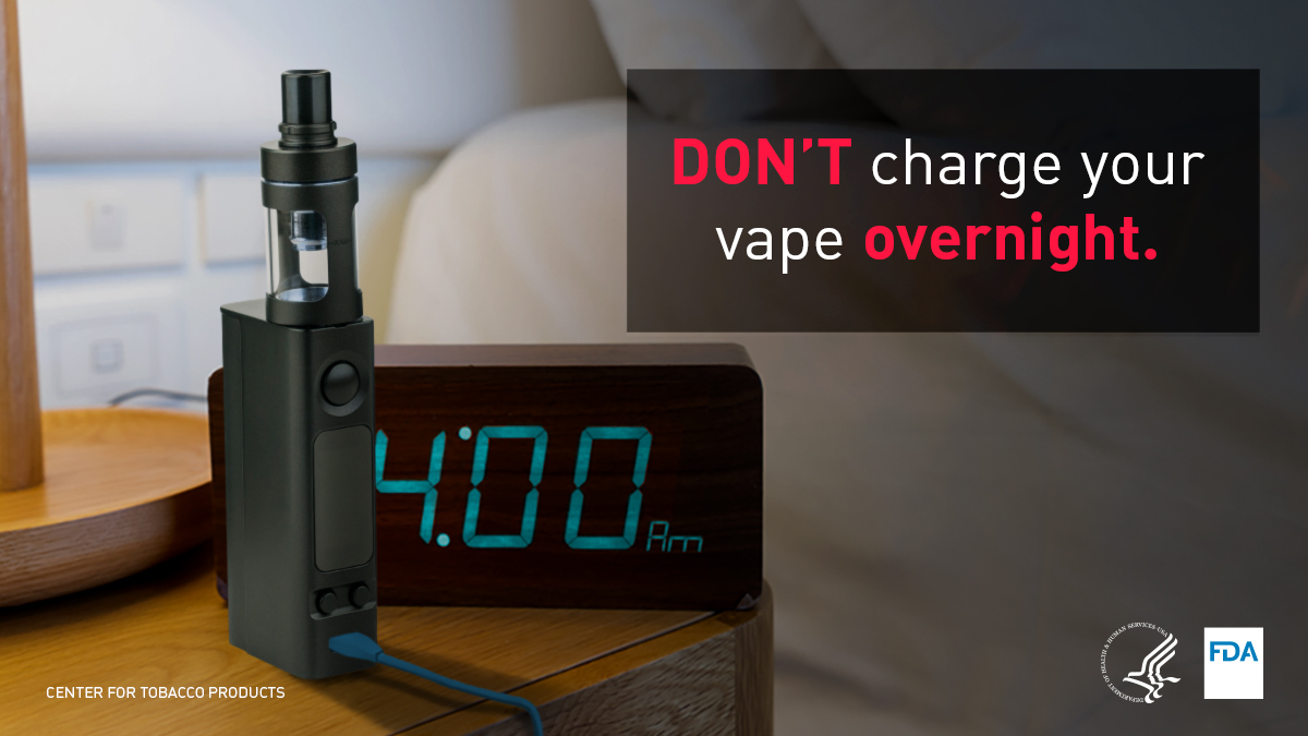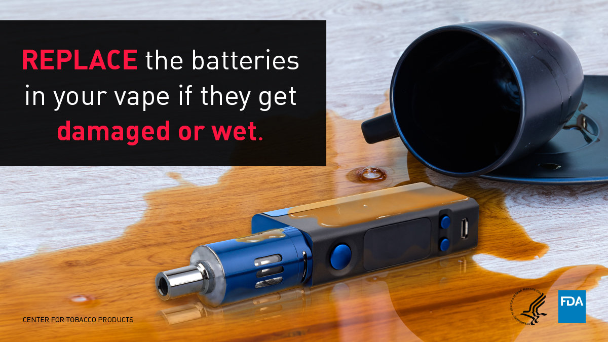 The exact causes of vape fires or explosions are not yet clear, but some evidence suggests that battery-related issues may be a cause. The tips below may help you avoid a vape battery fire or explosion. Please report a vape fire or explosion or any other undesired health or quality problems with a vape to FDA.
