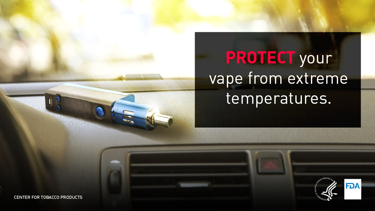- Protect your vape from extreme temperatures by not leaving it in direct sunlight or in your car on a hot summer day or freezing cold night, and do not charge it in extreme temperatures.